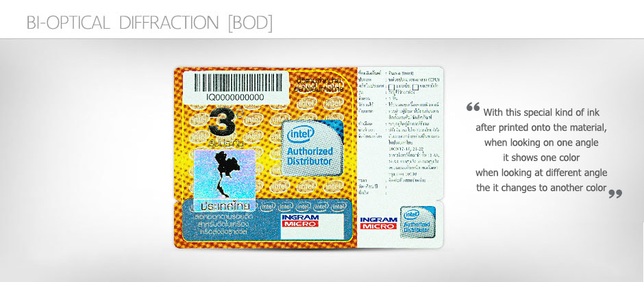 Overt Printing can detected by naked eyes and it is not requires special tool proper for that anti-counterfeit attribute or no need to use specific technique in detecting. The types of Overt Printing Technology consist of the following.